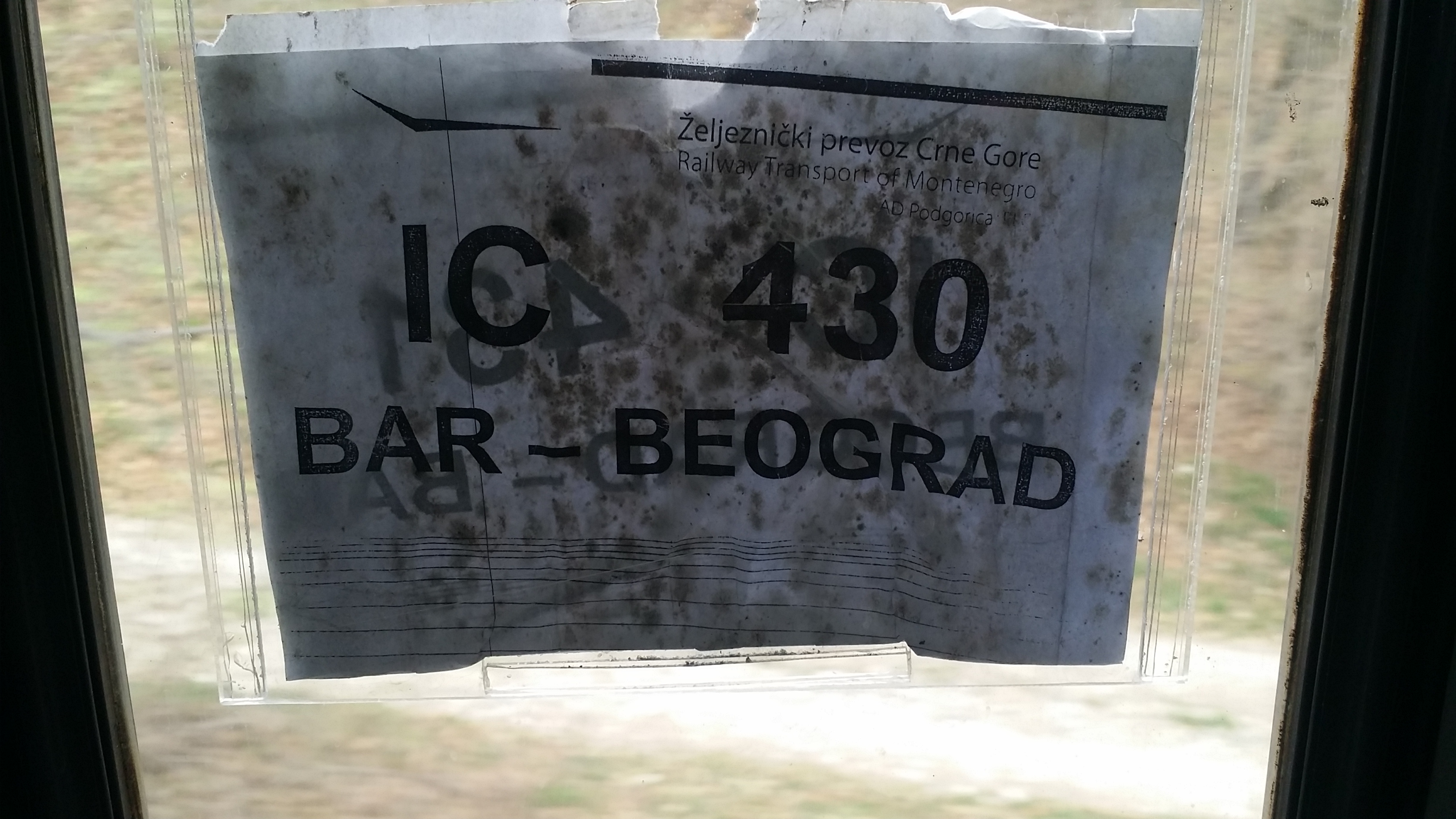 Panneau IC 430 dans le train de Bar (Monténégro) à Belgrade (Serbie)