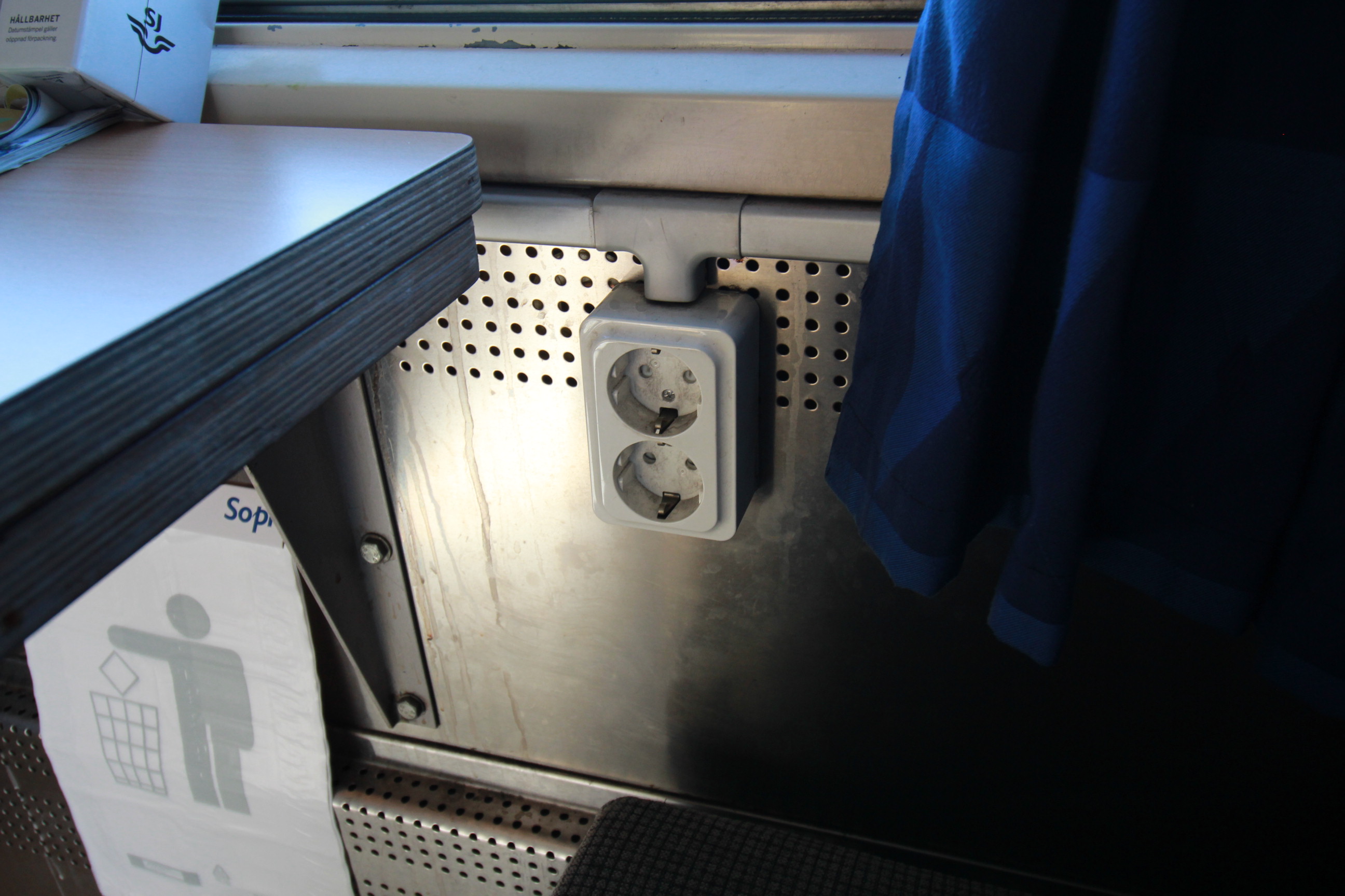 Prises électriques dans un compartiment 6 couchettes du train de nuit Stockholm Narvik